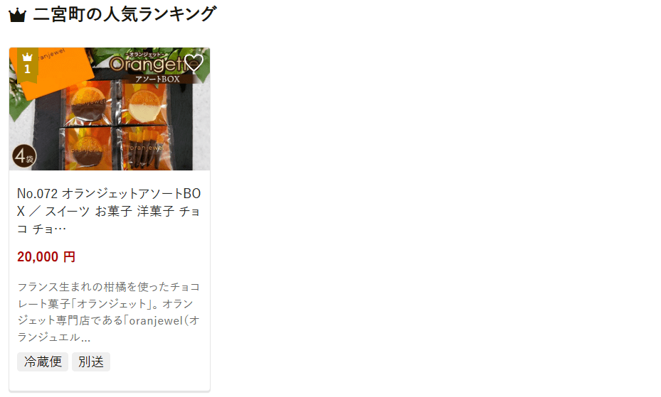 二宮町で人気の返礼品は、国産柑橘と厳選チョコレートを組み合わせたオランジェットアソートBOXです。他には、ふんわりとした真いわし削りや、菜の花とオリーブをモチーフにしたマグネットシートも人気です。寄附金は公共施設整備、緑化の推進、自然災害対策に活用されています。