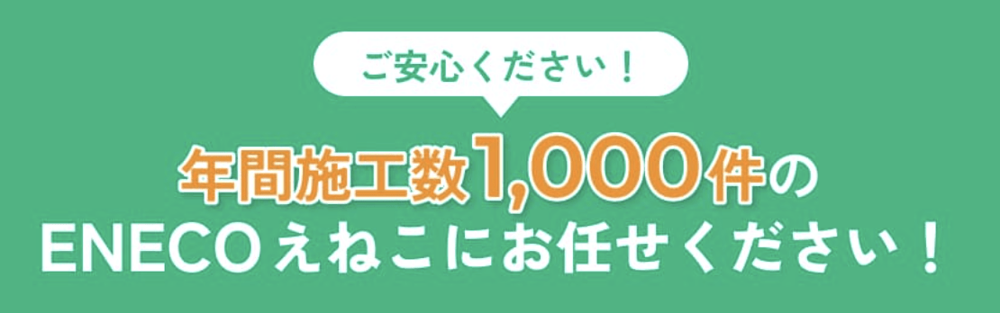 ENECOでは、補助金制度・施工・運用支援まで一気通貫で対応しており、年間施工実績は約1,000件、参画メンバーの累計施工経験は約11,000件以上とされています。