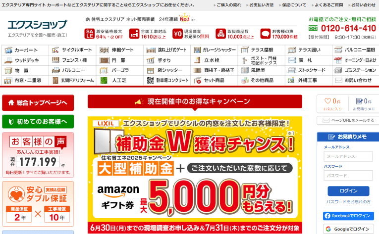 | ・製品を見て選びたい →エクスショップ | カタログのように完成品を見れる 工事費込みの価格で安心 |