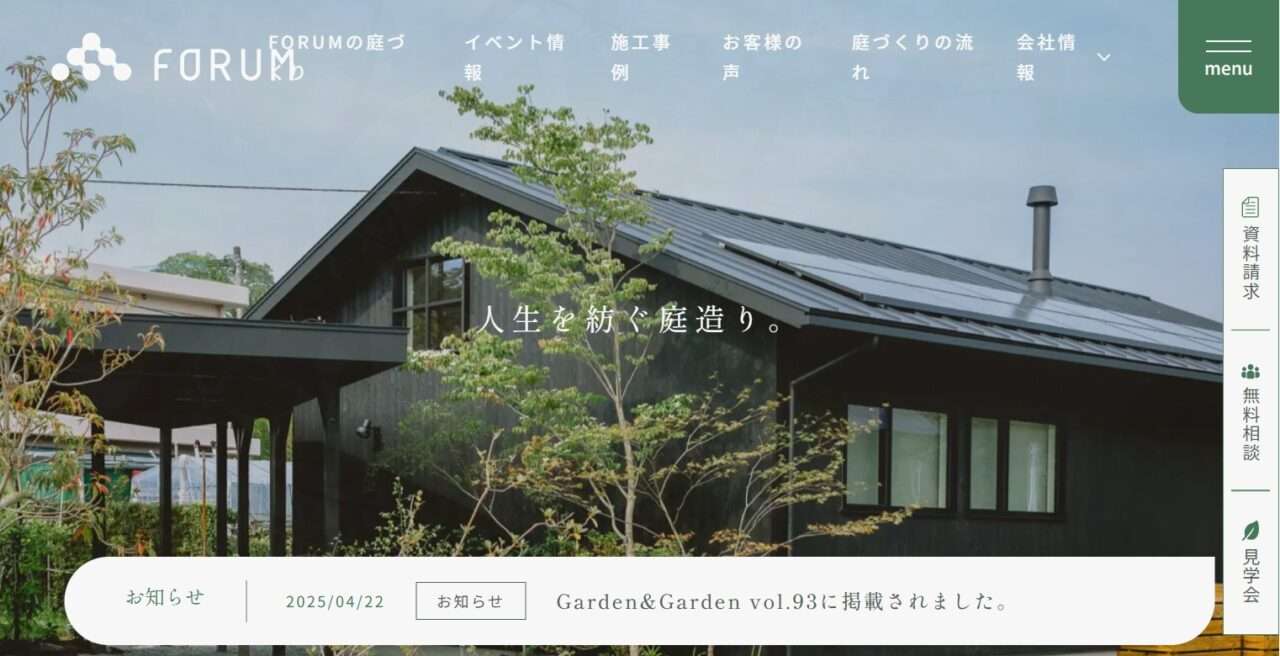 株式会社FORUMは、造園・外構工事を中心に、観葉植物や花瓶・鉢などインテリアグリーンの販売も手掛ける企業です。