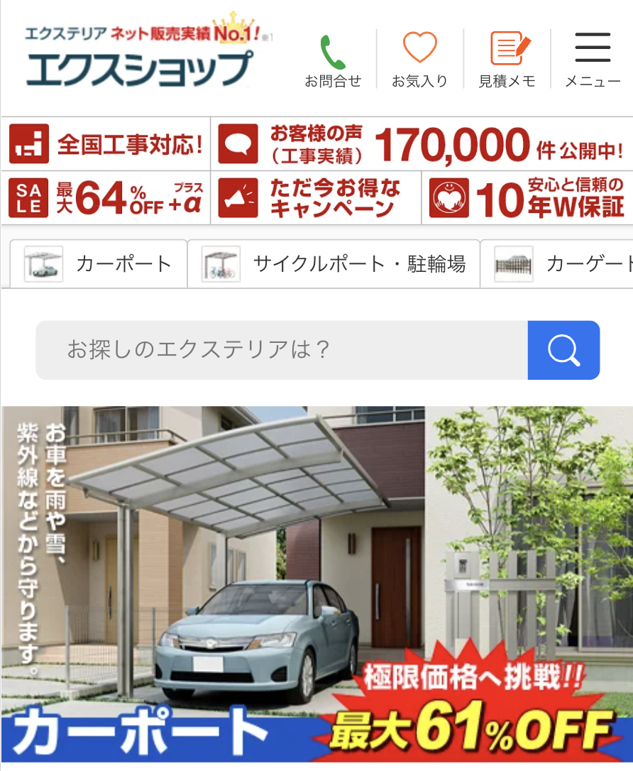 | ・製品を見て選びたい →エクスショップ | カタログのように完成品を見れる 工事費込みの価格で安心 |