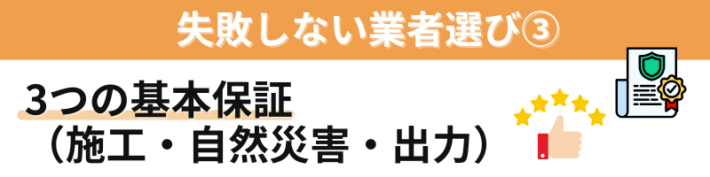 導入前に3つの基本保証(施工・自然災害・出力)を確認しましょう。