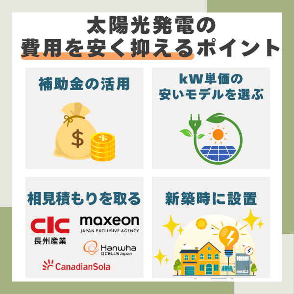 ただし、補助金やリース制度、蓄電池の導入でこれらの課題はカバーできます。